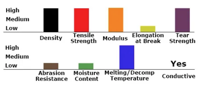 PAN Carbon fibers are characterized by their high dimensional stability, lightweight, chemical and biological resistance, low coefficient of thermal expansion, specific toughness, stiffness, strength and low relative density. They are most commonly used in combination with a matrix material to form an advanced composite. A low fibrillation, conductive filler is ideal for rubber and plastics reinforcement.